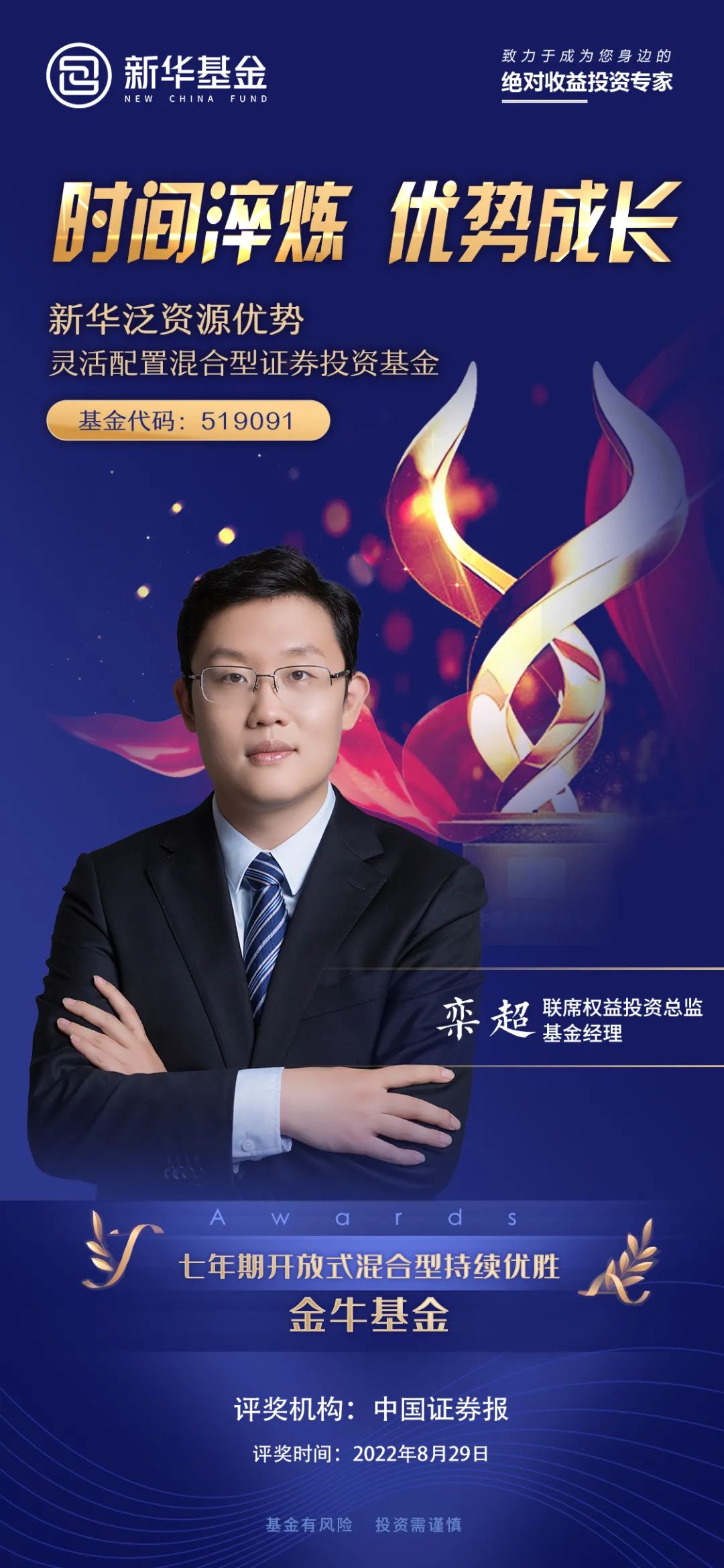 由中国证券报社主办的“2022中国基金业发展论坛”于8月29日在上海隆重举行,旨在汇聚行业菁英,纵论高质量发展主线下基金行业的使命与机遇。论坛上备受瞩目的第十九届中国基金业金牛奖颁奖典礼隆重举行,新华基金产品——新华泛资源优势灵活配置混合荣获七年期开放式混合型持续优胜金牛基金。