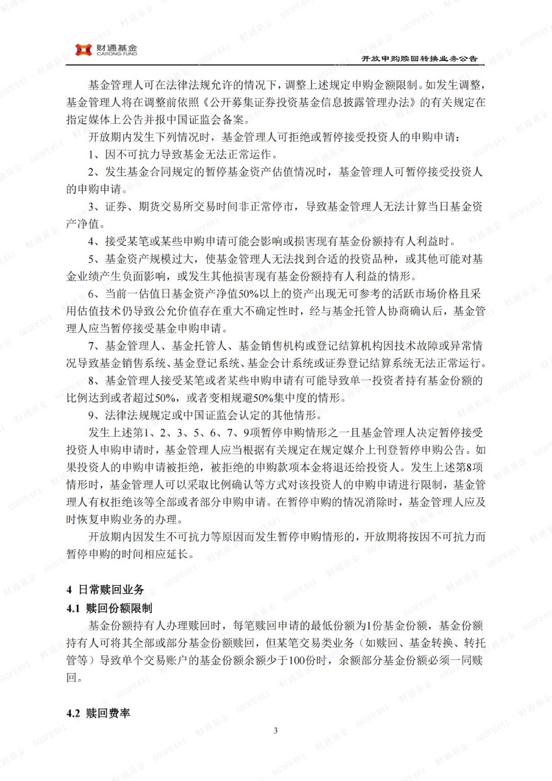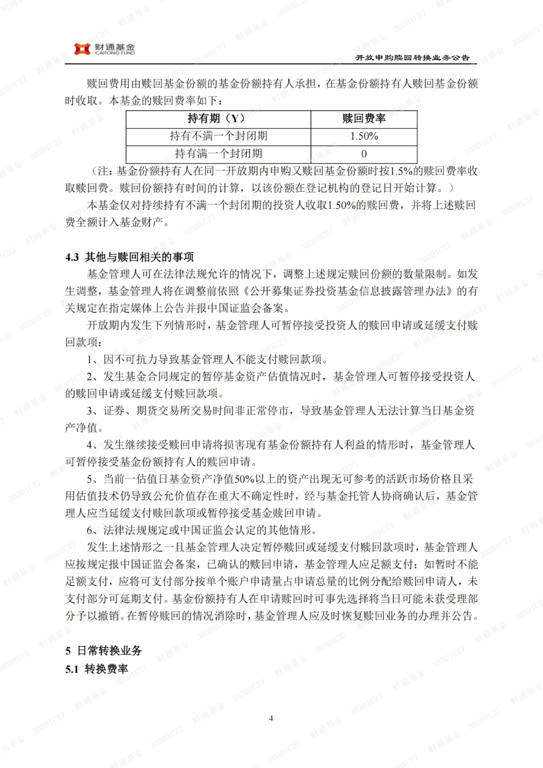 财通内需增长12个月定期开放混合型证券投资基金开放日常申购、赎回及转换业务并开展费率优惠活动的公告