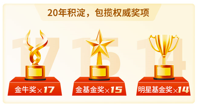 凭借出色的投资实力,公司成立 20 年来斩获近 50 座权威大奖,蝉联 2017、2018 年度金牛基金管理公司大奖,并荣获 2020 年度金基金·TOP 公司奖。