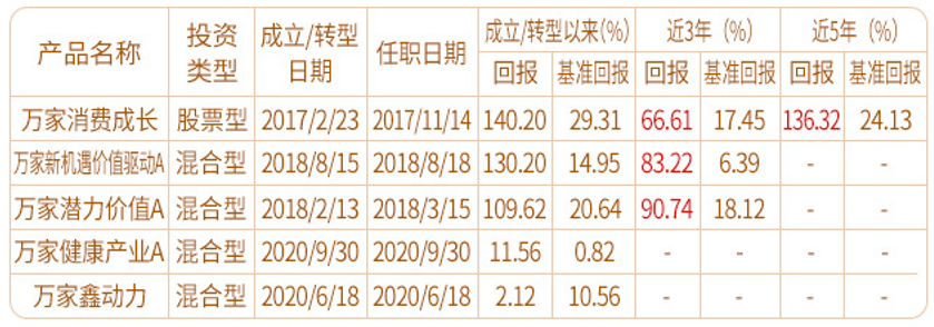 万家旗下权益类基金最近七年收益率165.59%,排名1/81;最近五年收益率118.33%,排名18/107;最近三年收益率111.11%,排名28/131。
